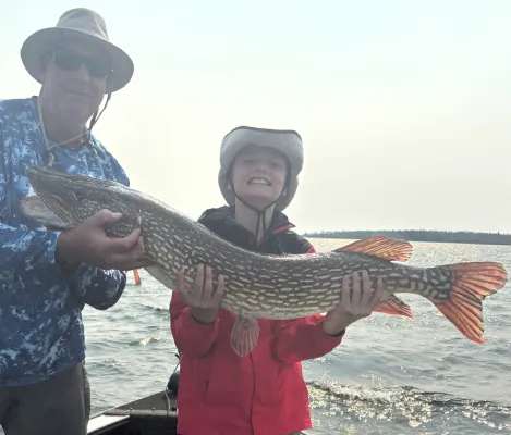 Since 1971, every season we run a Catch & Release Contest for northern pike and walleye. If you catch and release a Northern Pike over 29.5" and/or a Walleye over 21.5", take a measurement photo & a photo of you holding it, and bring it to the Lodge. The largest of each species at the end of open water season in October will win bragging rights, their name on the plaque in the lodge, and a custom engraved wooden photo frame for their fish photo.